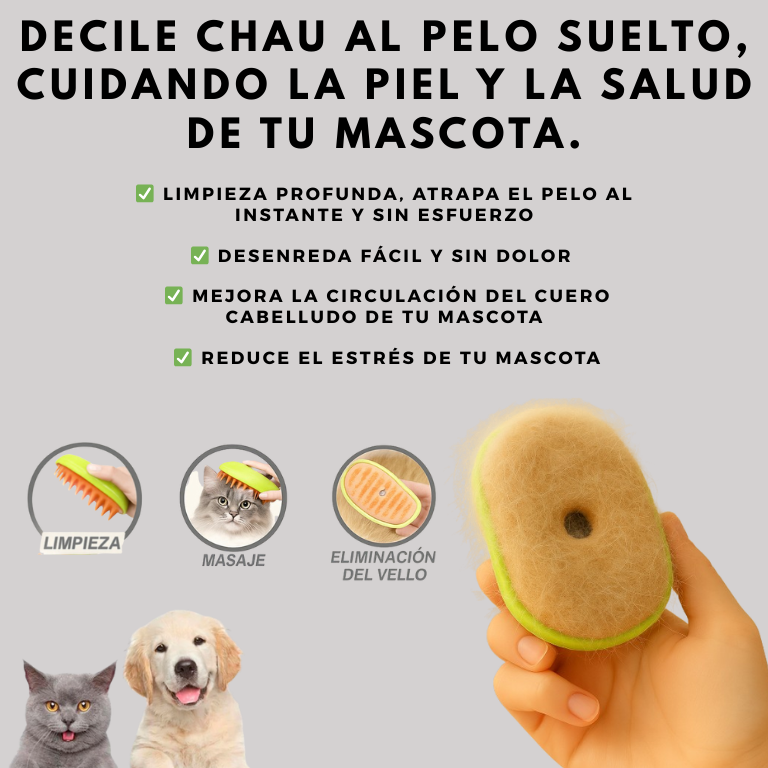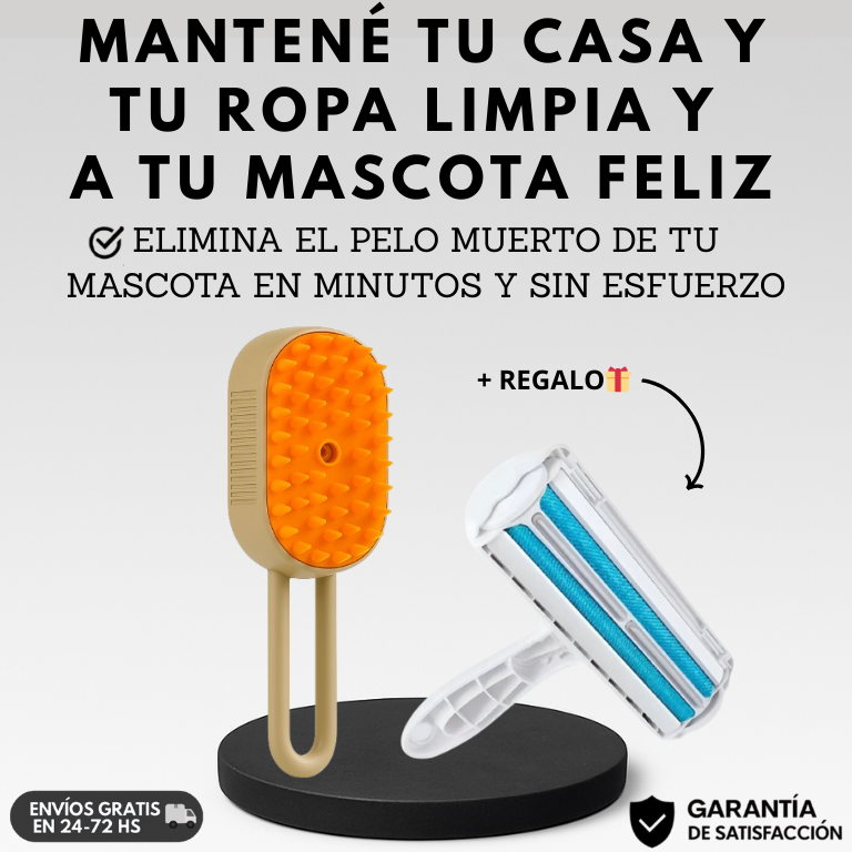 CEPILLO A VAPOR PARA MASCOTAS + RODILLO QUITA PELO