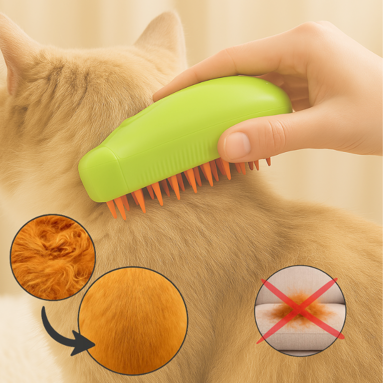 🪮 Adiós a los nudos y al drama: cepillarlo ya no es una pelea. El vapor hidrata, afloja los enredos y tu peludo queda pronto sin tirones ni nervios.