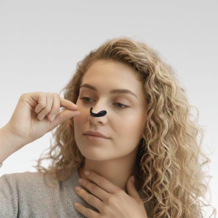 La respiración nasal ayuda a disminuir los ronquidos y los síntomas de apnea del sueño porque mantiene las vías respiratorias abiertas y asegura un flujo constante de aire, mejorando así la calidad y la salud de tu descanso.